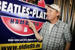 Bild 13 - Otto Waalkes unterstützt den Bau des Beatles-Platzes in Hamburg. Hier steht der Komiker vor einem Werbeschild des Beatles-Platzes.